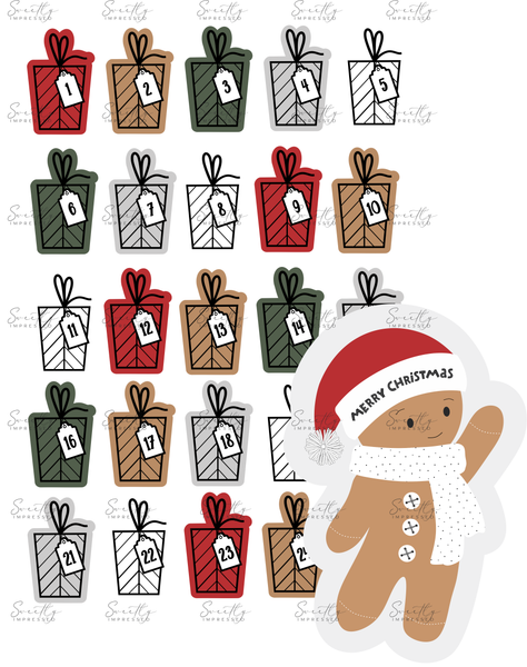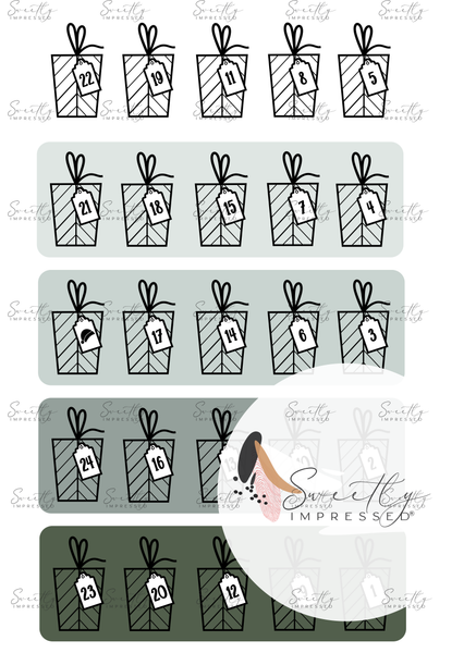 25 x Individual cut presents 1-24 (Santa hat tag for the 25th day)