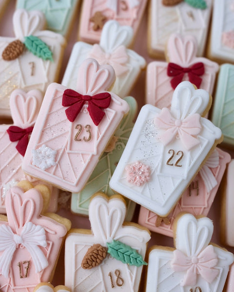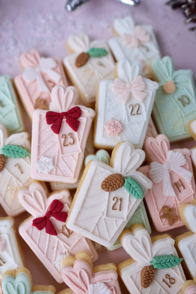 ADVENT COOKIES WITH THE INTENTION TO STAY FRESH FOR A DURATION OF TIME SHOULD ALWAYS BE HEAT SEALED AND KEPT IN A DRY PLACE IN AN AIRTIGHT CONTAINER OR FROZEN AND THAWED.